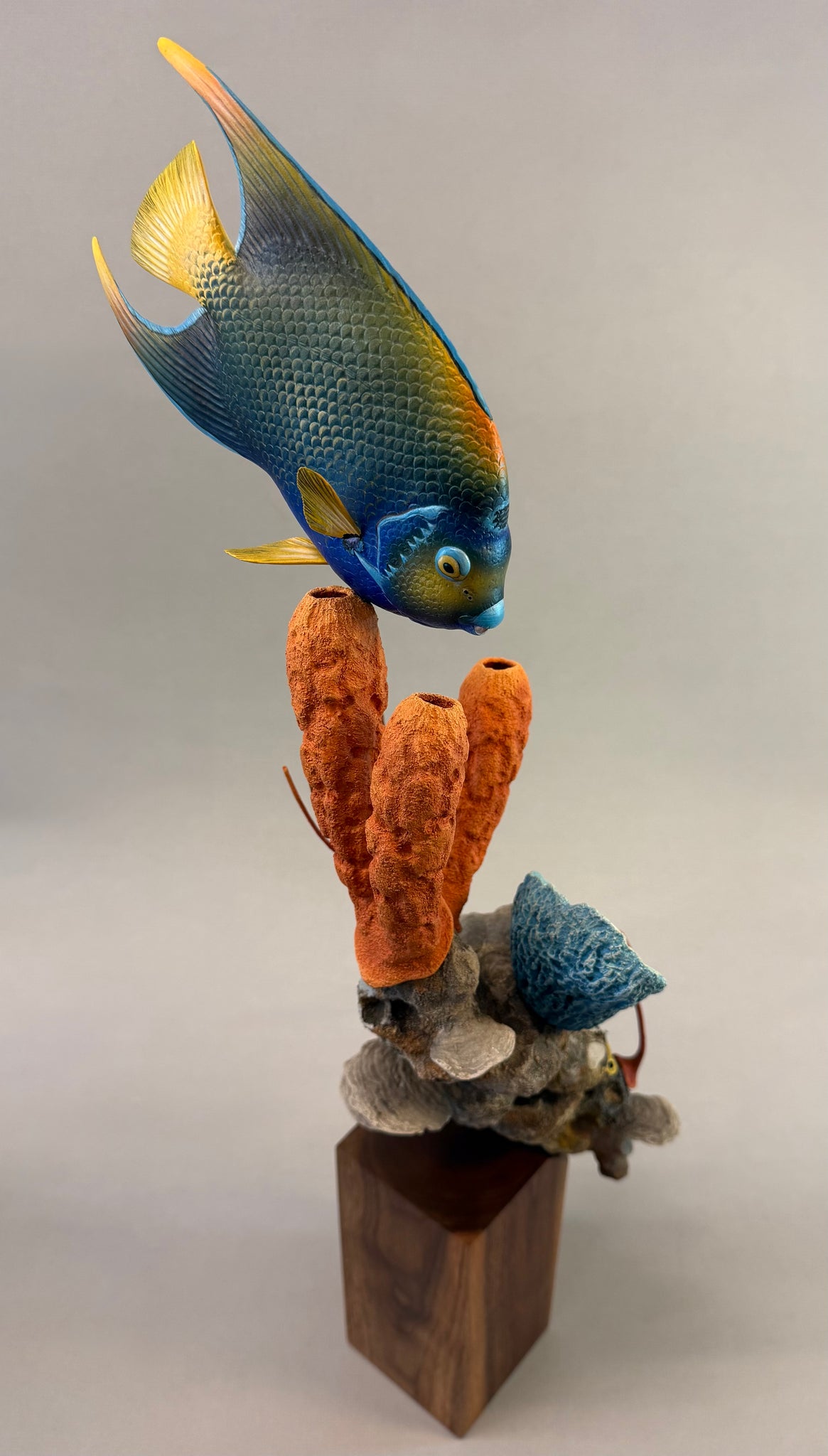 Josh will mount a premade queen angelfish to the coral habitat during the class. This fish was created in his Queen Angelfish video seminar. Students can purchase the queen angelfish video seminar if they want to make the fish to go with the coral.